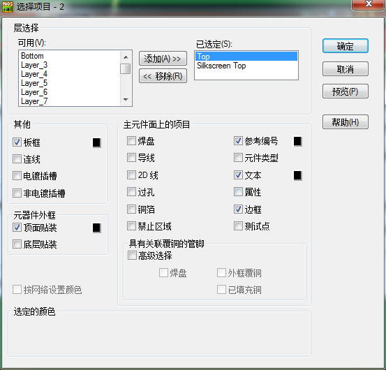 導(dǎo)出文字Gerber的時(shí)候,在TOP菜單要勾選參考編號(hào),文本,邊框三個(gè)選項(xiàng),在Silkscreen Top菜單欄要勾選參考編號(hào),文本,邊框,2D線,銅箔,屬性復(fù)選框,頂層文字和底層文字勾選是一樣的, 如圖所示: